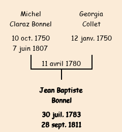Père : Michel Bonnel | Parrain : Jean Baptiste Bonnel (fils d'Etienne) |