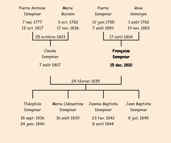 Epouse : Marie Françoise Dompnier, fille de Pierre et de Rose Dominjon |