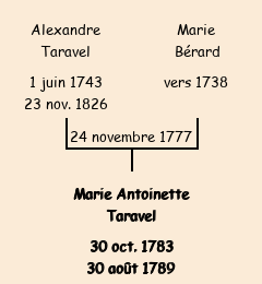 Mère : Marie Bérard | Marraine : Jeanne Marie Taravel (fille du dit Alexandre ) |