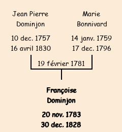 Père : Jean Pierre Dominjon | Parrain : Michel Dominjon (fils de Saturnin) |