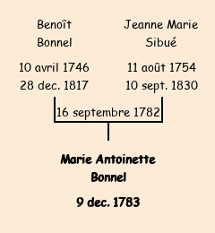 Père : Benoît Bonnel | Parrain : Michel Sibué (fils d'Alexandre décédé) |