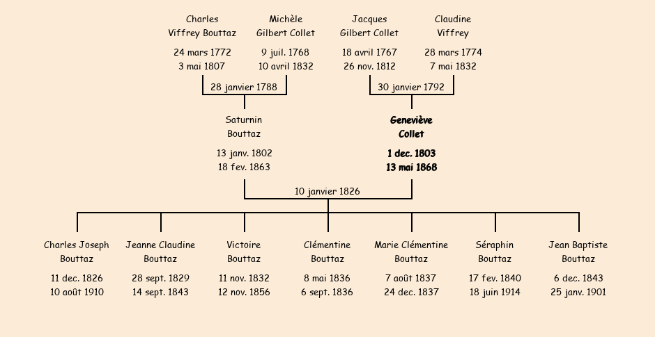 Epoux : Sorlin Bouttaz, fils de feu Charles et de Michèle Gilbert Collet |