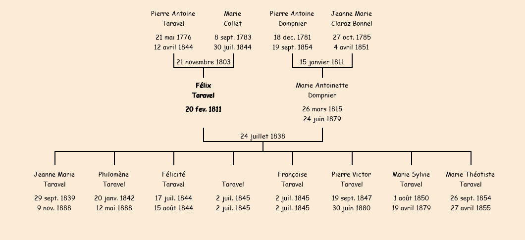 Père : Pierre Antoine Taravel, fils de Louis | Parrain : Félix Anselme (fils de Gaspard décédé) |