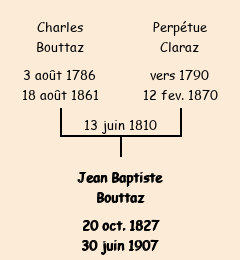 Père : Charles Bouttaz | Parrain : Jean Baptiste Collet (Saturnin Vincent : erreur sur le nom ) |