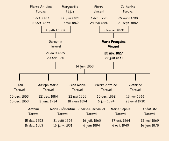 Mère : Catherine Taravel | Marraine : Marie Vincent (soeur du parrain) |