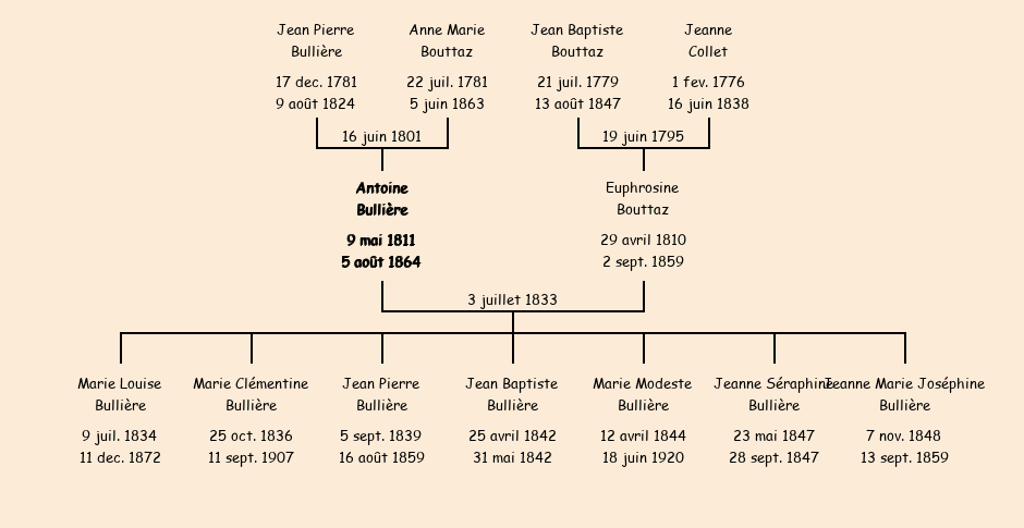 Epoux : Antoine Bullière, fils de feu Jean Pierre et de Marie Anne Bouttaz |
