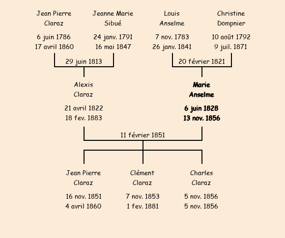 Mariée (22 ans) avec Alexis Claraz (28 ans) le 11 février 1851 à Fontcouverte ![]() |