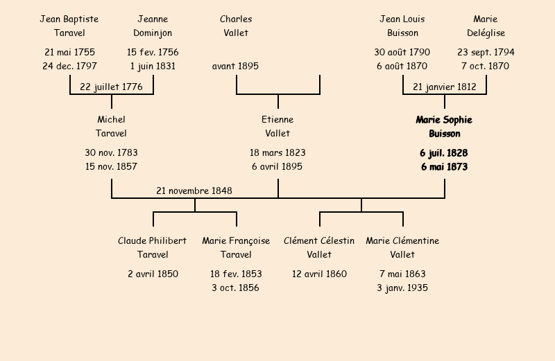 Epouse : Marie Sophie Buisson (21 ans, a marqué), fille de Jean Louis (a signé) et de Marie Deléglise |