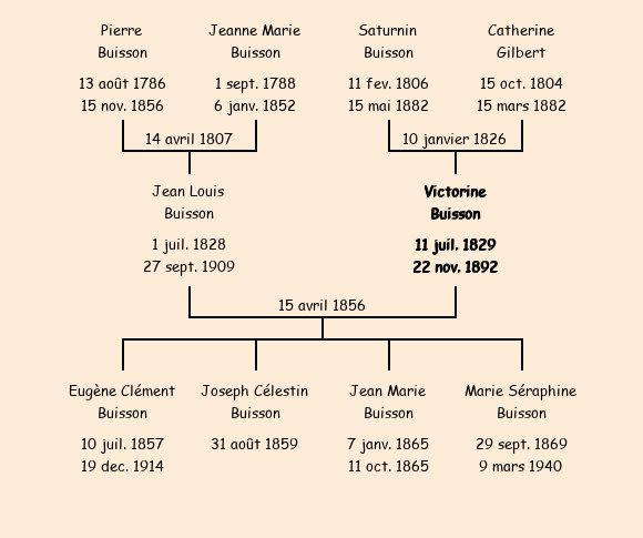 Epouse : Victorine Buisson (26 ans, a marqué), fille de Saturnin (a signé) et de Catherine Gilbert |
