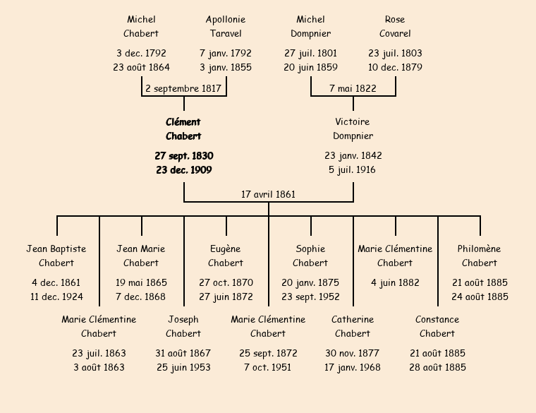 Marié (30 ans) avec Victoire Dompnier (19 ans) le 17 avril 1861 à Fontcouverte ![]() |