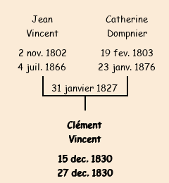 Père : Jean Vincent, fils de Pierre Antoine | Parrain : Claude Vincent (fils de Pierre Antoine décédé) |