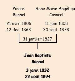 Père : Pierre Bonnel, fils de Michel | Parrain : Jean Bonnel (fils de Michel décédé, oncle paternel) |