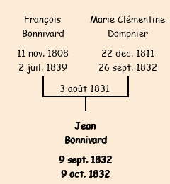 Mère : Marie Clémentine Dompnier, fille de Pierre Antoine | Marraine : Victoire Bonnivard (tante du baptisé) |