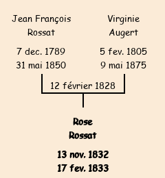 Mère : Virginie Augert, fille de Pierre | Marraine : Rose Rossat (tante de la baptisée) |