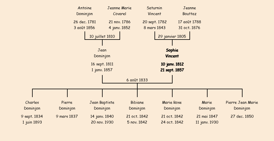 Epouse : Sophie Vincent, fille de Saturnin et de Jeanne Bouttaz |