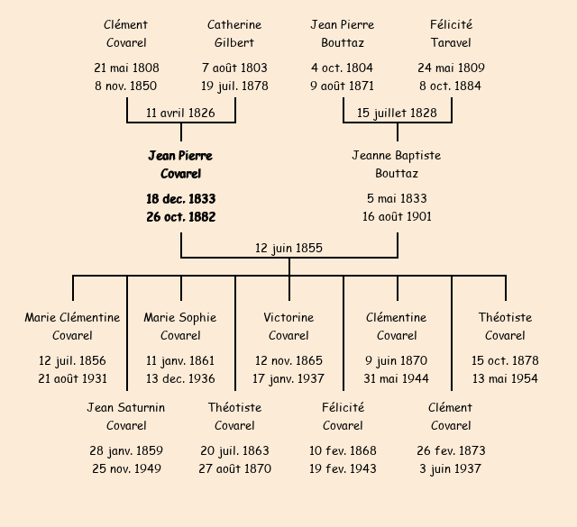 Epouse : Jeanne Baptiste Bouttaz (22 ans, a marqué), fille de Jean Pierre (a signé) et de Félicité Taravel |