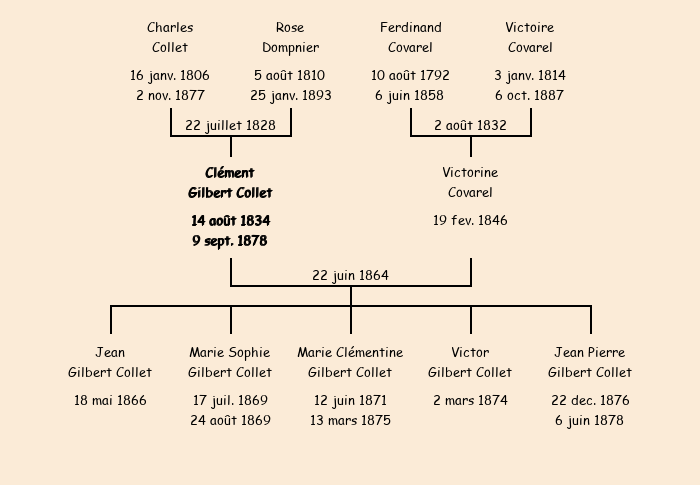 Père : Charles Gilbert Collet, fils de Jacques | Parrain : Clément Covarel (fils de Jean) |