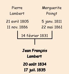 Père : Pierre Lambert, fils de Jean | Parrain : Jean François Lambert (fils de Pierre) |