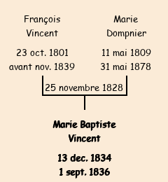 Père : François Vincent, fils de Jean | Parrain : François Dompnier (oncle de la baptisée) |