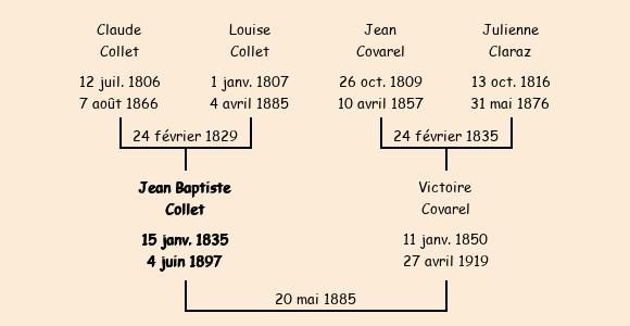 Père : Claude Collet, fils de Pierre Antoine | Parrain : Jean Baptiste Gilbert Collet (oncle du baptisé) |