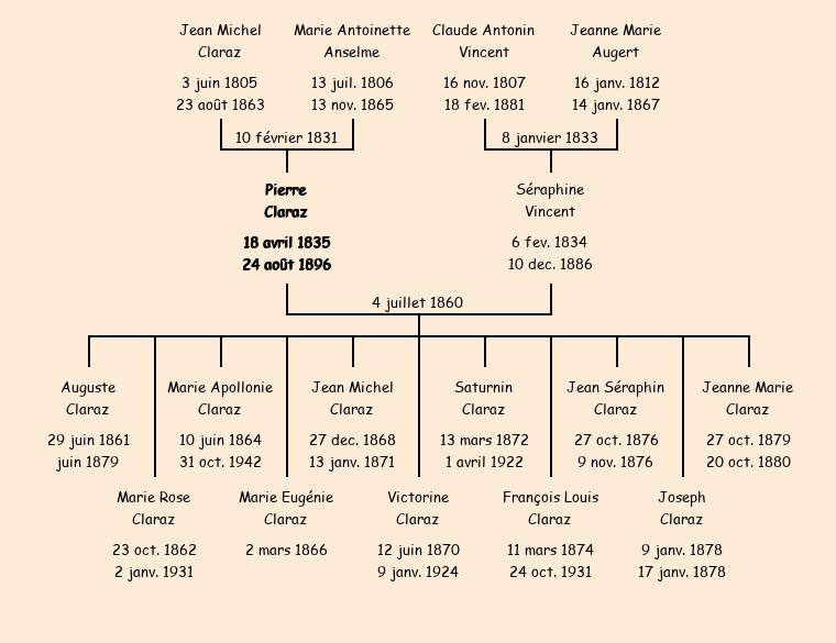 Père : Jean Michel Claraz | Parrain : Pierre Claraz (fils de Michel) |