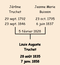 Père : Jérôme Truchet, fils de Cyprien | Parrain : Louis Auguste Buisson (fils de Pierre décédé) |