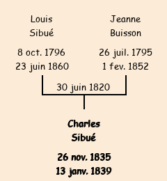 Père : Louis Sibué, fils de Claude | Parrain : Pierre Sibué (fils de Jean Baptiste décédé) |