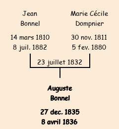 Père : Jean Bonnel, fils de Michel | Parrain : Auguste Dompnier (fils de Pierre Antoine) |