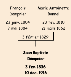Mère : Marie Antoinette Bonnel, fille de Pierre | Marraine : Geneviève Bonnel (fille de Pierre) |