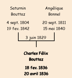 Père : Saturnin Bouttaz, fils de Jean | Parrain : Félix Bouttaz (fils de Jean) |