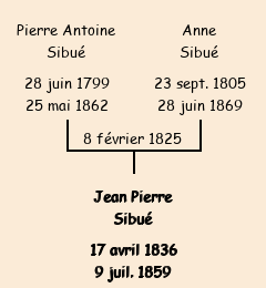 Père : Pierre Antoine Sibué, fils de Jean Baptiste | Parrain : François Sibué |