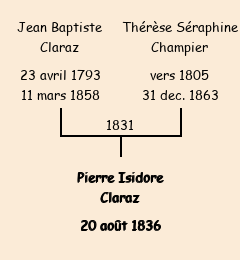 Père : Jean Baptiste Claraz, fils de Pierre | Parrain : Isidore Champier |
