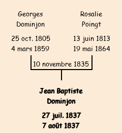 Père : Georges Dominjon, fils de François | Parrain : Ambroise Poingt (fils de Jean Baptiste) |