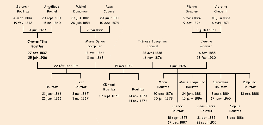 Père : Saturnin Bouttaz, fils de Jean | Parrain : François Bouttaz (oncle du baptisé) |