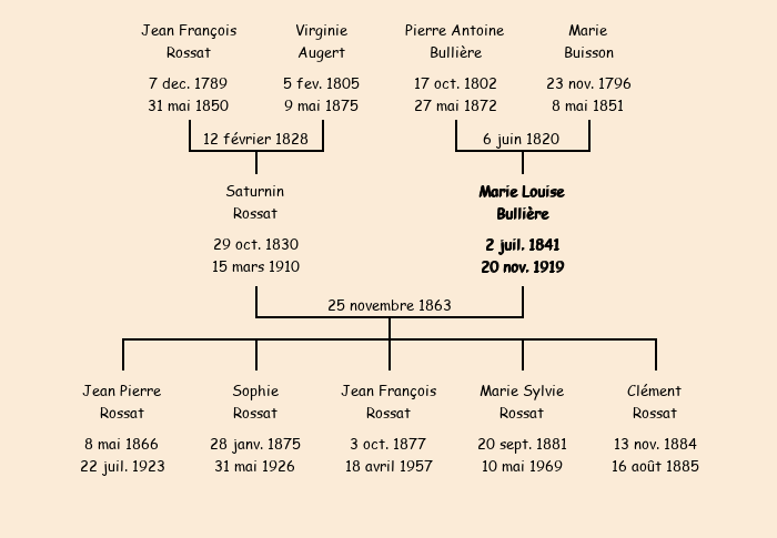 Mariée (22 ans) avec Saturnin Rossat (33 ans) le 25 novembre 1863 à Fontcouverte ![]() |