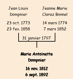 Père : Jean Louis Dompnier, fils de Pierre | Parrain : Benoît Bonnel (grand-père maternel) |