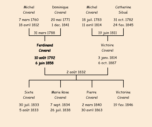 Marié (39 ans) avec Victoire Covarel (18 ans) le 2 août 1832 à Fontcouverte ![]() |