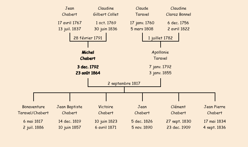 Epouse : Apollonie Taravel, fille de feu Claude et de Claudine Bonnel |