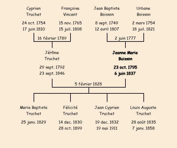 Epoux : Jérôme Truchet, fils de feu Jean Cyprien et de feue Françoise Vincent |