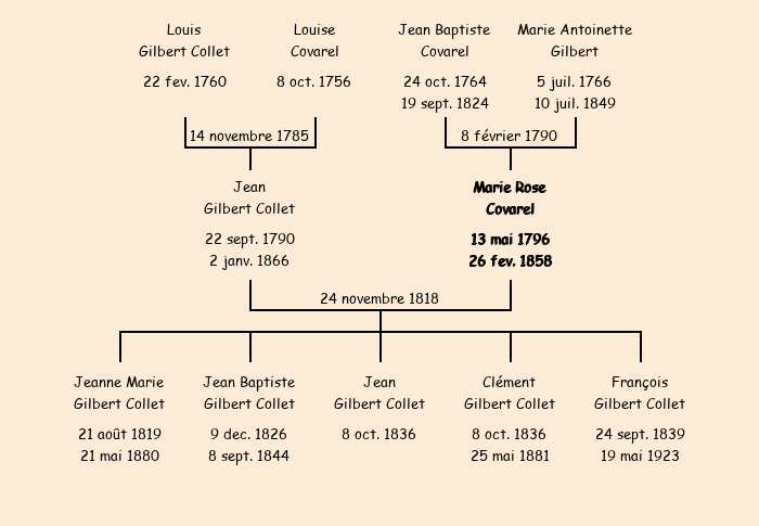 Epoux : Jean Gilbert Collet, fils de Louis et de Louise Covarel |