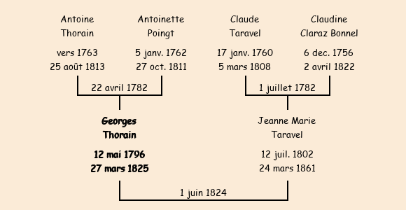 Epoux : Georges Thorain, fils de Antoine et de Antoinette Poingt |