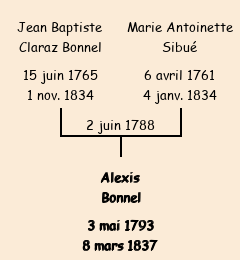 Père : Jean Baptiste Bonnel, fils de Jean Baptiste | Parrain : Pierre Antoine Dompnier (fils de Claude décédé) |