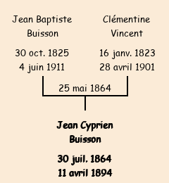 Jean Cyprien Buisson apparait dans le dénombrement de la population de 1881. |