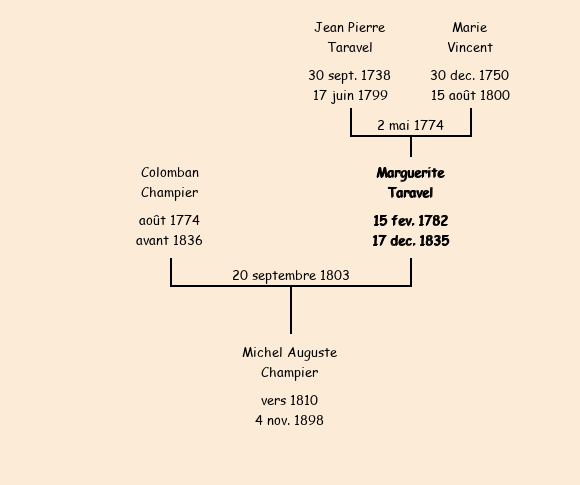 Epouse : Marguerite Taravel, fille de feu Jean Pierre et de feue Marie Vincent |
