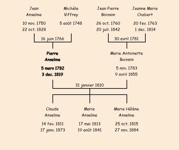 Epouse : Marie Antoinette Buisson, fille de Jean Pierre et de Jeanne Marie Chabert |