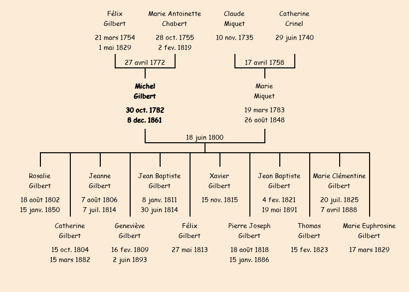 Epoux : Michel Gilbert, fils de Félix et de Marie Antoinette Chabert |