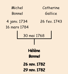 Mère : Catherine Gallice | Marraine : Hélène Julien (veuve de Ftançois Bonnel) |