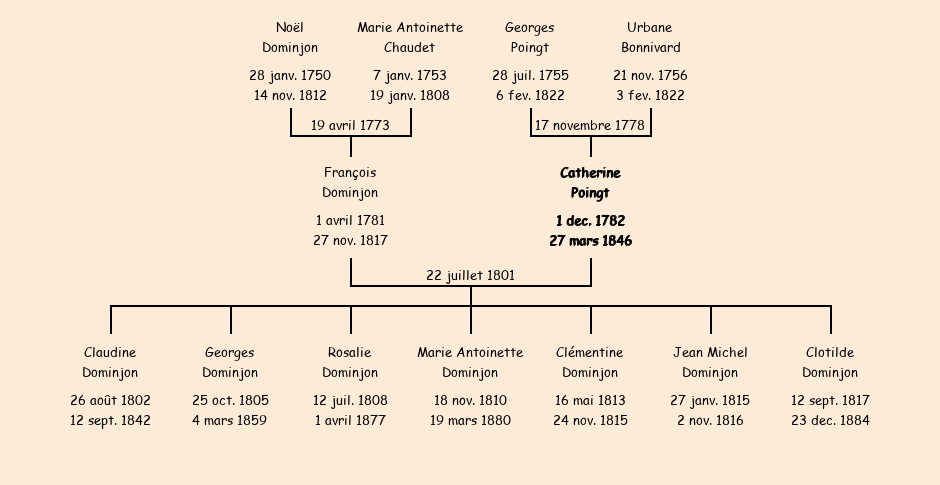 Epoux : François Dominjon, fils de Noémi et de Marie Antoinette Chaudet |