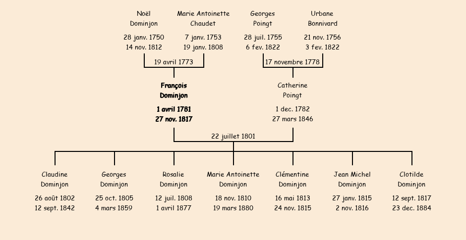 Epoux : François Dominjon, fils de Noémi et de Marie Antoinette Chaudet |