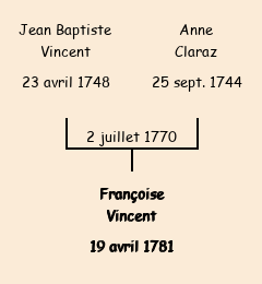 Mère : Anne Claraz | Marraine : Françoise Vincent (fille de Pierre) |